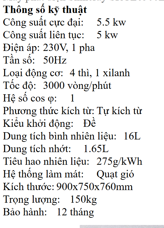 Máy phát điện Shineray SRGE6500E là một thiết bị cung cấp nguồn điện xoay chiều ổn định, được sử dụng rộng rãi trong các trường hợp mất điện, các công trình xây dựng